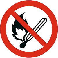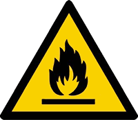 Feuer, offenes Licht und Rauchen verboten; Warnung vor feuergefährlichen Stoffen; Augenschutz benutzen; Handschutz benutzen